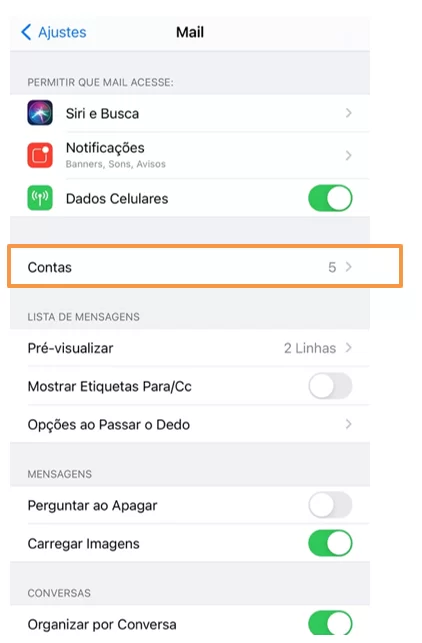 - No dispositivo, abra Ajustes (Configurações).