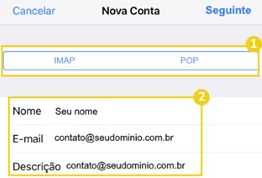 - Escolha IMAP como tipo de conta (permite acessar os e-mails diretamente do servidor).