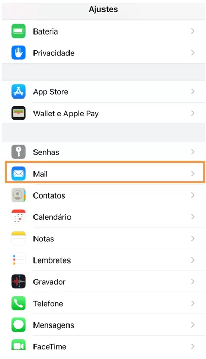 - Role até encontrar Mail e clique.