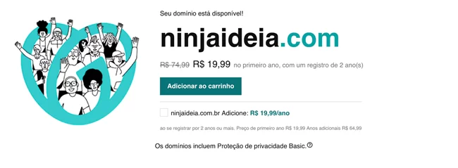 - Se o domínio estiver livre: você verá a opção para adicioná-lo ao carrinho.