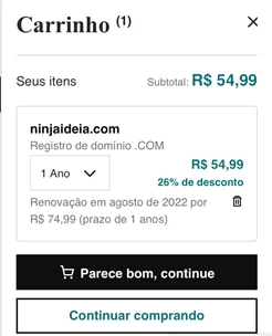 💡 Importante: o domínio será registrado em seu nome, garantindo sua propriedade enquanto os pagamentos anuais forem realizados.