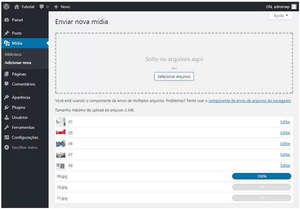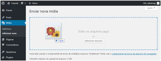 📌 A biblioteca de mídia serve apenas para armazenar os arquivos. O uso da imagem será definido posteriormente na edição de posts, páginas ou widgets.